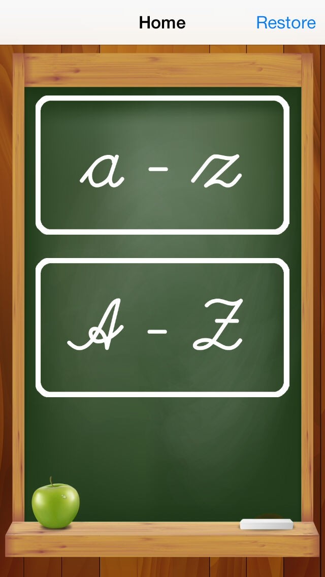 筆記体で書く:書き込みや学校のためのアルファベットの文字をご覧くださいのスクリーンショット
