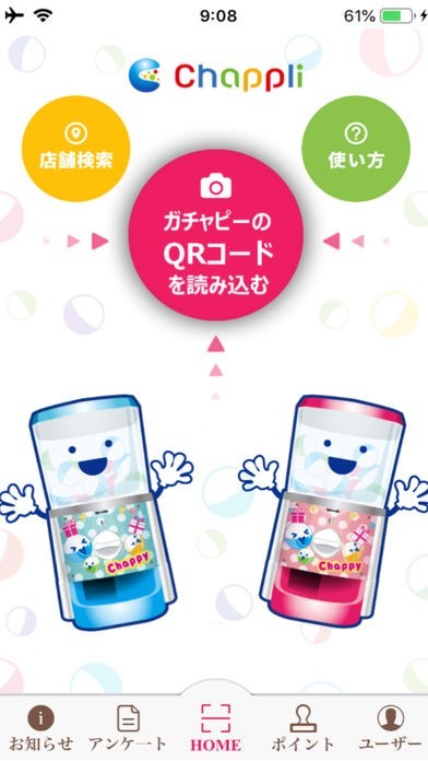 Chappliで本体にランダムに表示されるQRコードを読み取って抽選し、当た