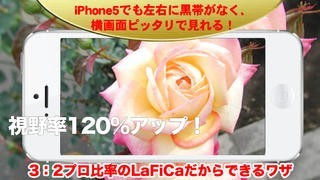 LaFiCaで撮れば、横写真がiPhone5標準カメラのように黒帯で狭くなることなくフル画面で表示されます。