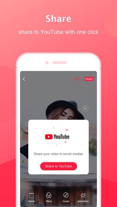 7.One-click Sharing: support sharing your creation to YouTube with one click, and get more views and likes.