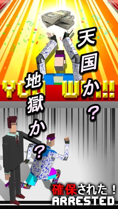 某人気テレビ番組の同人ゲームとして開発された「ただいま逃亡中」はポリゴンで表現されている主人公を操って黒服のハンターから逃げるランアクションゲームアプリです左右方向に進むボタンとまっすぐに進むボタンを駆使して建物に隠れながら進むゲームとなっていて、ハンターに見つかってしまったらダッシュボタンをタップすることで距離をとることが可能になっています。さらにマップボタンをタップすることで全体を確認することが出来るようになっているので制限時間を考えながら捕まらないように逃げ続けましょう。できるだけ長い時間逃げ続けることで高得点をゲットできます。