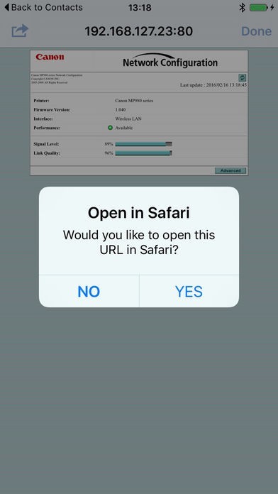 検出した機器の管理パネルへはブラウザのSafariを使用してアクセスすることができます。管理パネルごとにIPアドレスを手打ちしてアクセスするよりもはるかに簡単なので、このアプリを通して管理するのはおすすめです。