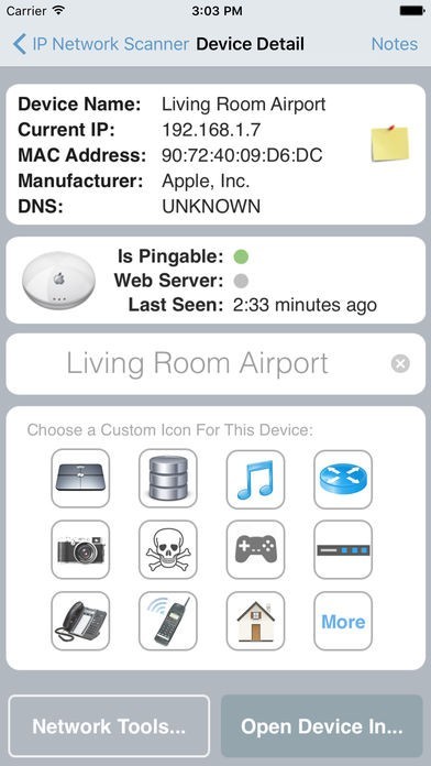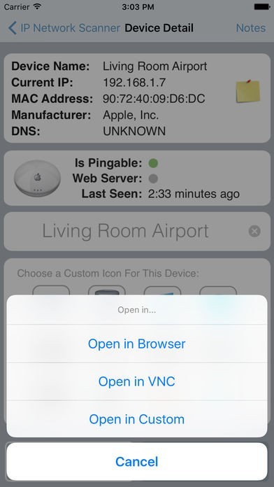 • カスタマイズ可能な結果 – 発見したデバイスに、独自の名前とアイコンを割り当てることが可能