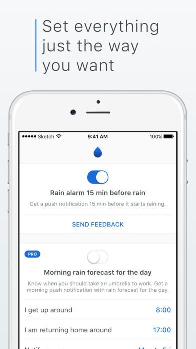 雨が降る15分前に情報を通知してくれるので、外出先の急な天気の変化にも対応できます。15分あれば、傘を購入したり建物に避難することができるので安心です。外出先で雨に濡れる心配がなくなります。