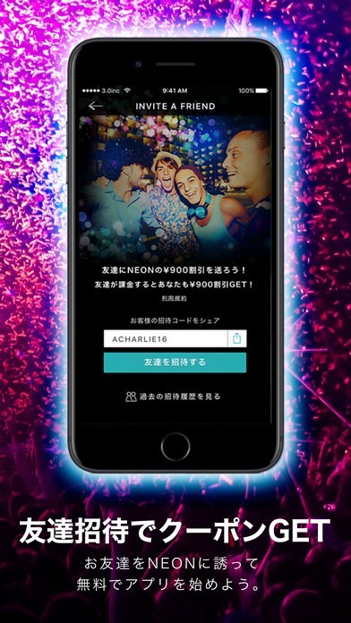 友達や家族などをアプリに招待することによって、お得に利用することができるアプリ限定クーポンをゲットすることができるのでクラブ好きな知り合いを誘って一緒に楽しむこともできます。