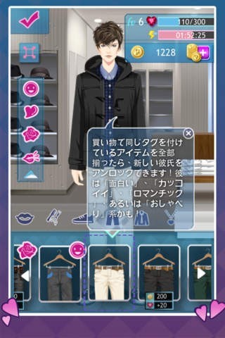 アプリ「理想の彼氏メーカー」で、髪型、服装、小物などを選んで自分好みの彼氏を作れる!