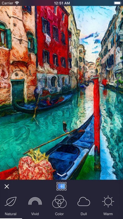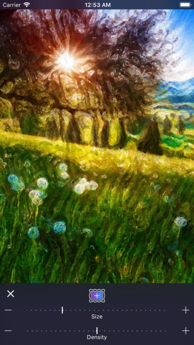 調節機能があります。画風を好みに調節することが可能です。色合いの明暗や暖かさなどスライダーで調整していきます。平面の写真が立体的に変わっていきます。油絵初心者の方も気軽に楽しめます。