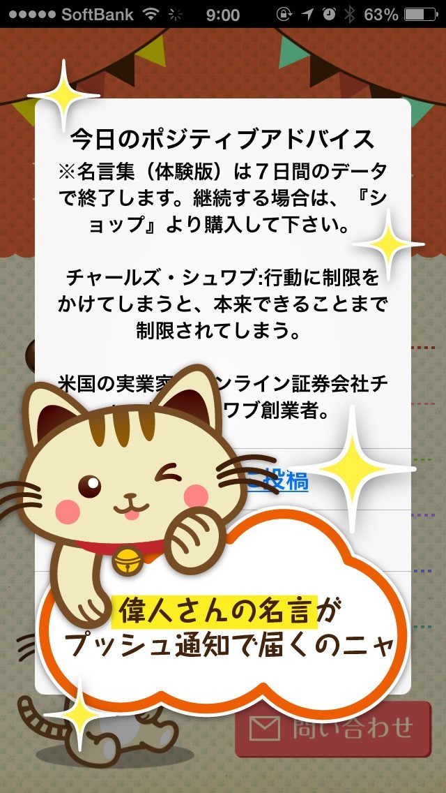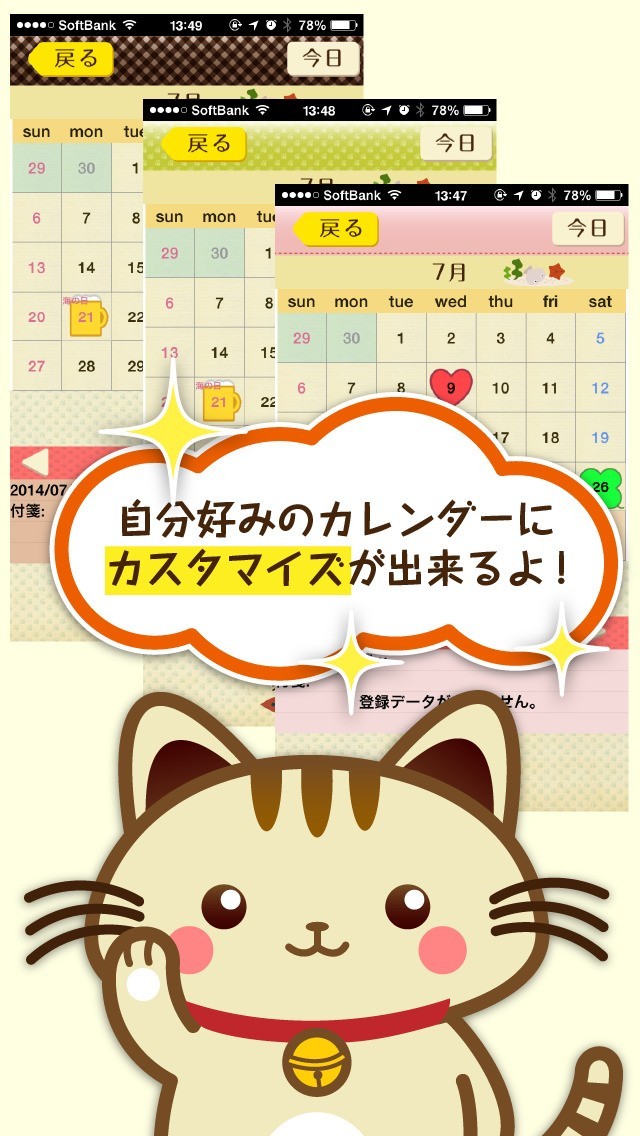 猫のイラストが色々な画面で登場するから、全部探してみてネ!