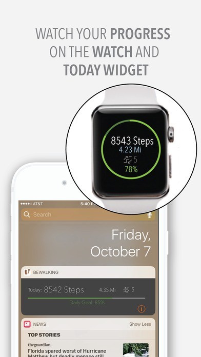 -今日観に iOS8 を与えるステップ BeWalking ウィジェット カウント、フロア数 (iPhone 7、6 s と 7Plus/6SPlus のみ) とパーセントの毎日の目標を達成。