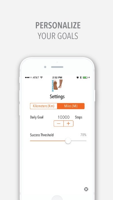 -カスタマイズ可能な日々 のステップの目標、成功のしきい値および (マイルまたはキロメートル) の距離設定も。
