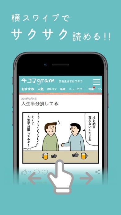 ◆【4コマ漫画を横スワイプで読む新感覚のアプリ】です。