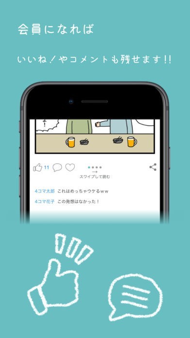 SNSとして、4コマ漫画が好きなもの同士、ツッコミを入れたりボケてみたり、新しいコミュニケーションを楽しめますヨ!!