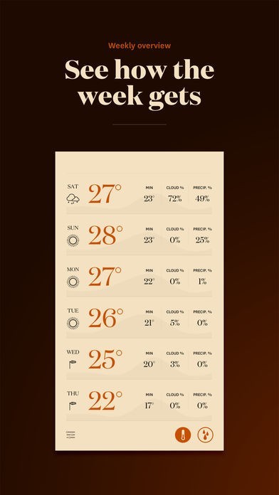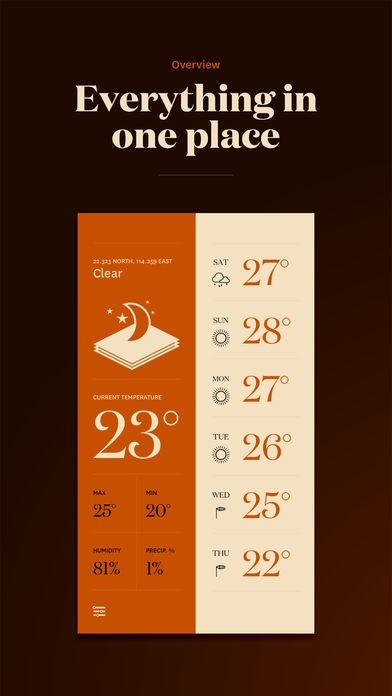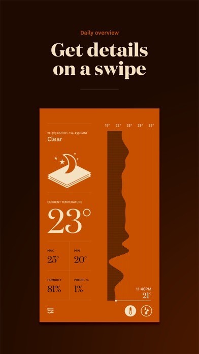 App Storeより引用Forecast is an application that shows you the weather in a beautiful way. Everything is in one place and with a simple swipe you can get details about the current day or the week.