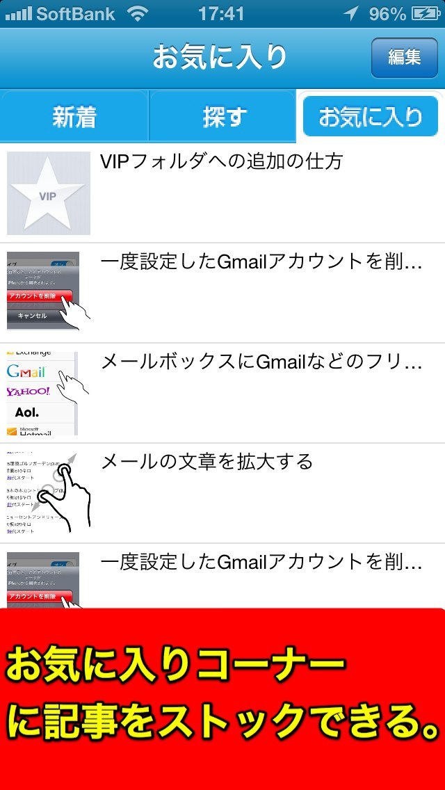 使い方と最新ニュースfor iPhone- 使えるアプリはメールソフトやSafariの使い方など基本のものから始まるiPhoneの様々な機能、バッテリーをより長く持たせる方法など小ワザ的な便利機能の紹介、また様々な用途のアプリの紹介、最新のiPhoneのニュースの掲載なども行っている情報アプリです。記事はお気に入り登録の機能があり読み返しやすくなっています。