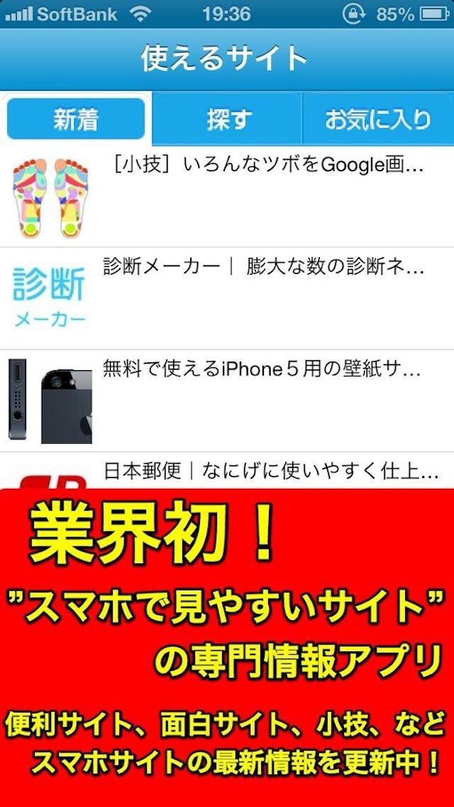 「スマホで見やすくて便利なWEBサイトを紹介中!使えるサイト」でネットに散らばっている情報を一括チェック