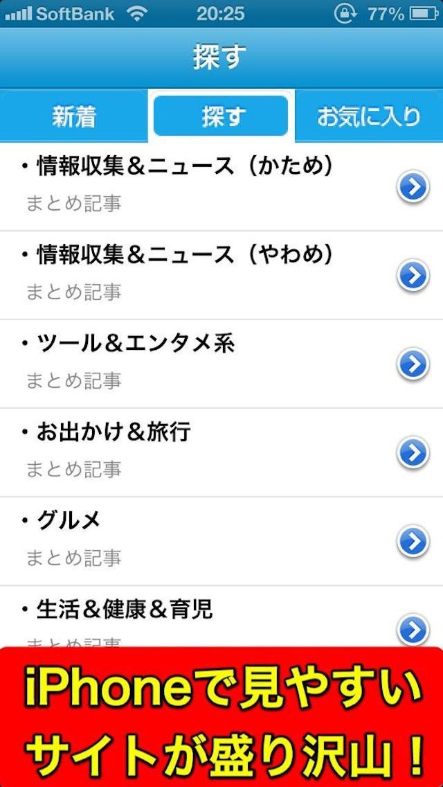 Safariでも観覧しやすいように、スマホ用にウェブサイトを最適化してくれるアプリです。ファッション、グルメ、おもしろetc、カテゴリ分けされたサイトがあらかじめ用意されています。トレンドをいち早くリサーチしたい人や暇つぶしで観覧できるサイトを求めている時に最適です。写真や動画を交えて見やすい仕様になっているため、内容が分かりやすいサイトばかりです。気に入ったサイトがあったら、お気に入り登録しておきましょう。そうすればいつでも読み返すことができます。