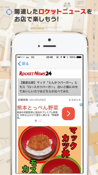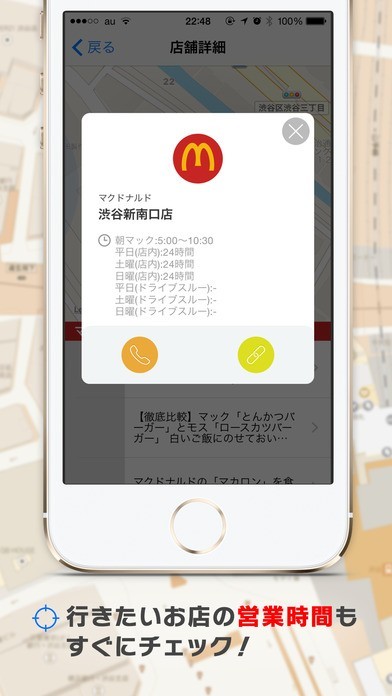 App Storeより引用たった1秒。自分の近くにあるファストフード店がチェックできるグルメアプリ。