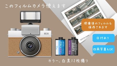 このアプリで再現されるカメラは1960年代のものです。12枚ずつで終わってしまうフィルムを選択しなければならなかったり、レンズが劣化していたりとカメラが趣味の方が楽しめるアプリになっています。
