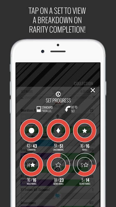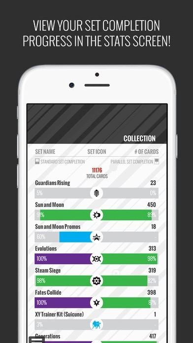 All Pokemon cards are organized based on series, allowing you to navigate quickly. Information such as HP, evolutions, attacks and stage can be found once you tap on a Pokemon card. Easily view the next card in the set by swiping the card when in the fullscreen view.