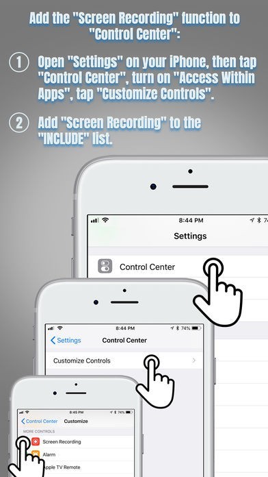 First, please add "Screen Recording" function to the "Control Center" on your iPhone/iPad: