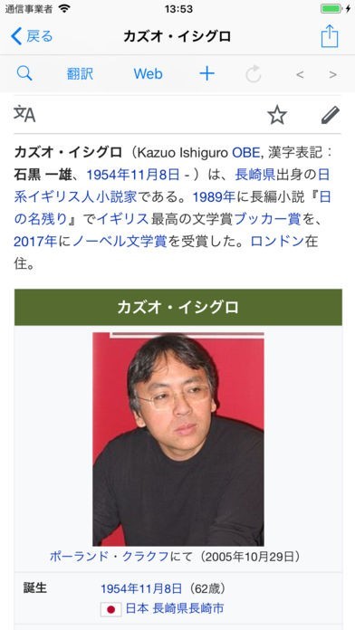 ウィキ検索のスクリーンショット