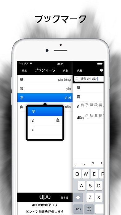 ◦ 字で発音を調べ、発音で字を調べることが出来ます。