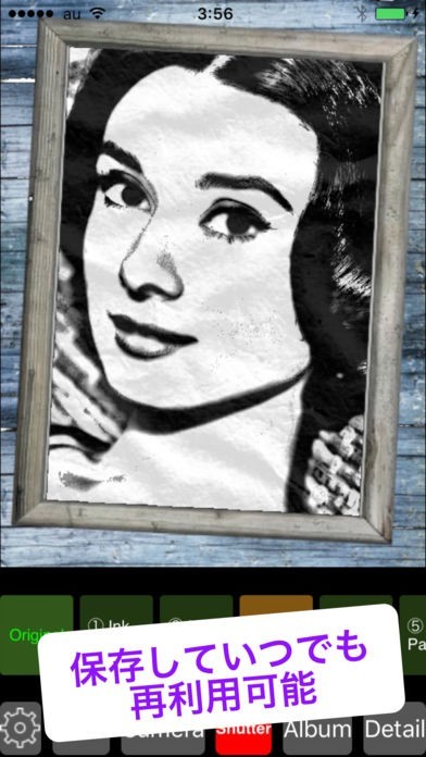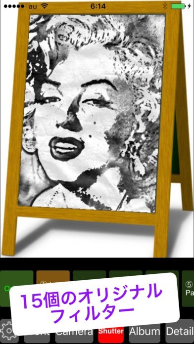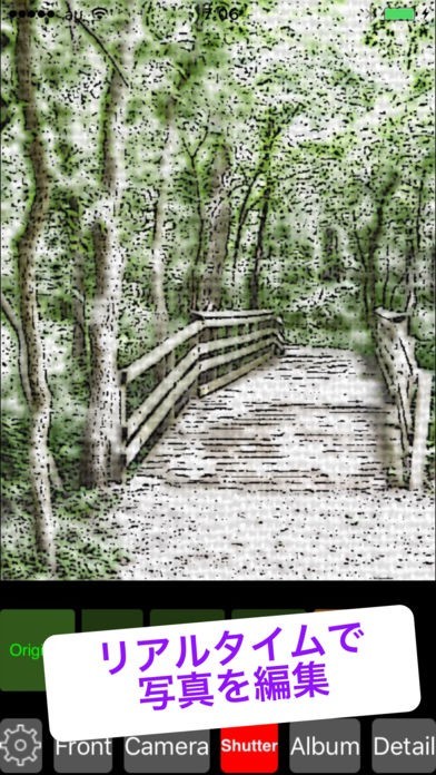 カメラで撮影した写真を、リアルタイムで水墨画タッチに仕上げることができます。フィルターがかけられた状態を見ながらシャッターが切れるので、完成をイメージしやすくなっています。