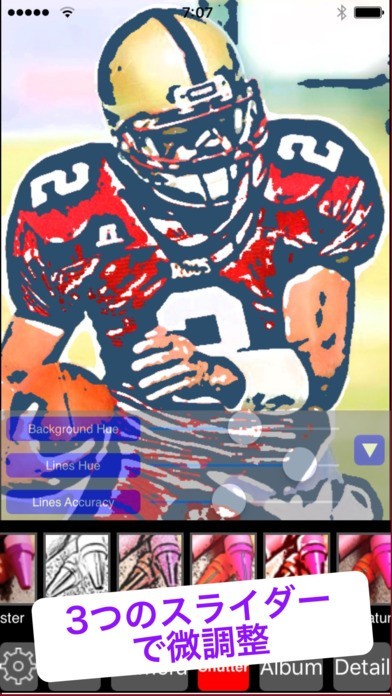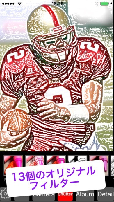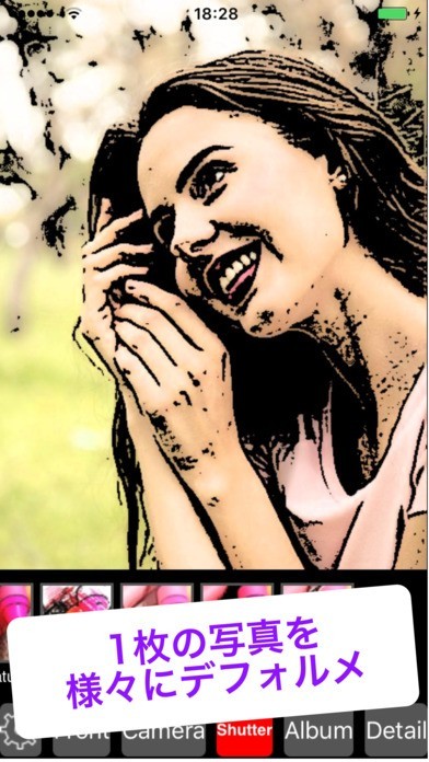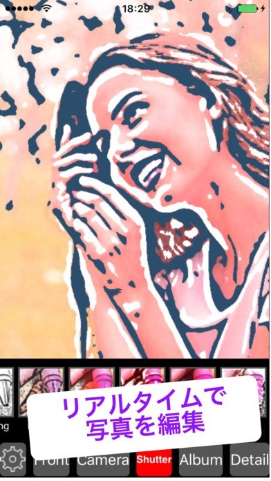App Storeより引用写真を手書き風のデッサン画、スケッチ画に加工するアプリです。独自の技術によって生み出された13個のオリジナルフィルタで、写真を多彩に加工してみましょう。カメラから入ってくる映像に直接エフェクトをかけますので、デフォルメの結果を確認しながらシャッターを切ることができます。