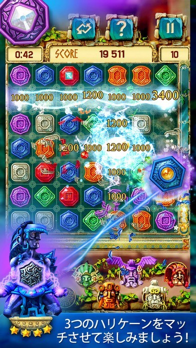 「モンテズマの宝3」はキラキラした宝石をつなげるシンプルなゲームです。遊び方は同じ色の宝石をスワイプするするだけ!簡単ながらも高い戦略性が求められます。連鎖を増やすごとに得られるポイントが増えるので、高得点をどんどん狙っていきましょう。制限時間は1分間、時間制限があるので隙間時間にオススメ!仕事や勉強の息抜きとしても最適、気分転換をしたい会社員や学生にもオススメです。華やかなグラフィックとサウンドによるスカッと感で、鬱屈した気持ちも即座に切り変えられます。難易度も自由に設定可能、軽い頭の運動をおこなったり高レベルのパズルで戦略性を鍛えたり、様々な形で活用できます。