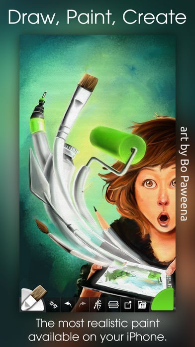最大4096 x 4096の解像度に対応したこのアプリは、ブラシの切り替えにより水彩画、鉛筆画、油絵などに対応しています。作成したイラストのTwitterなどへの投稿もアプリから直接行えます。