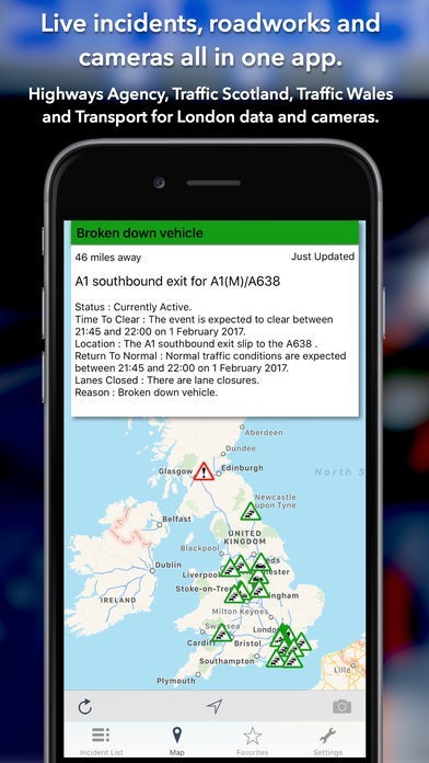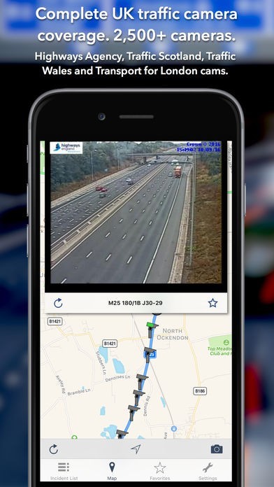 App Storeより引用The ONLY app to show live traffic incidents, roadworks and over 3,000 cameras covering England, Scotland, Wales and London. The December 2018 release optimises for iOS12.