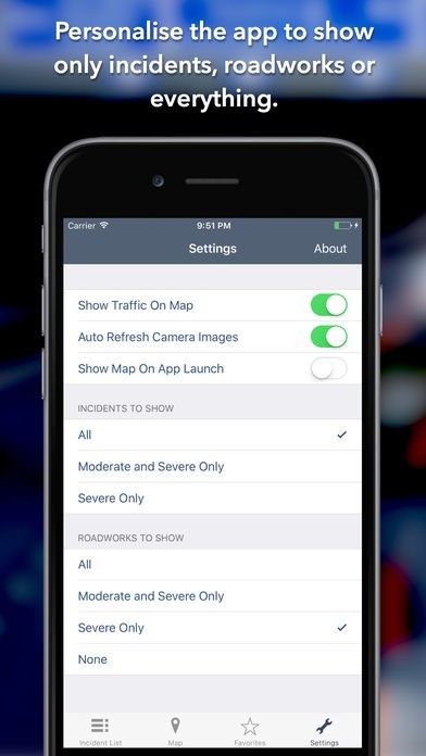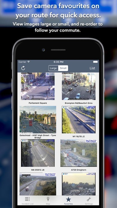 - Save your favourite cameras for quick access to see how clear/congested your usual routes are.