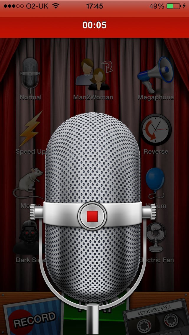全年齢の人が楽しめますーあなたの声をネズミや邪悪なデーモンのように変えたり、リバース再生したり。録音は数秒でも数時間でも可能。面白い録音はメールで友達と共有しよう!