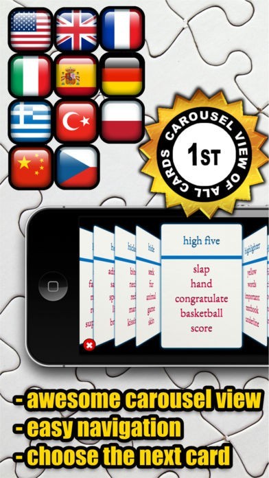 カードに記載された5つの単語を使わずにその単語を説明して、当てるゲームです。9つの言語に対応しているので、ゲームとして遊ぶだけではなく勉強にも使えるツールになっています。