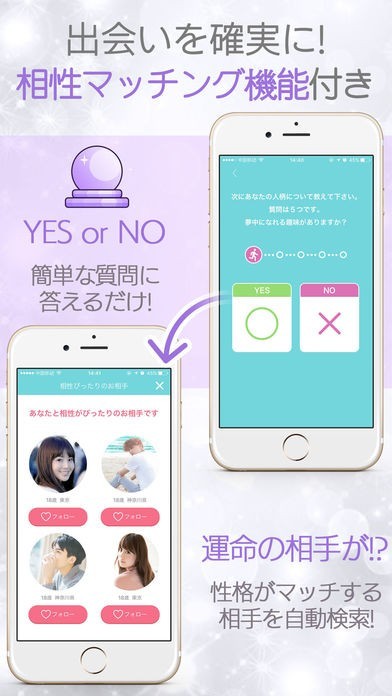 YesかNoで答えることができる簡単な質問の答えによって、自動で相性の良い相手をマッチングしてくれます。性格が合う人に絞って検索できるので、相手を探す手間が省けます。