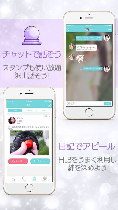 気になる人がいたらチャットする前にフォローすることができます。フォローしておけばいつでも日記をチェックできるので、チャットの話題になるようなネタを事前に用意できます。