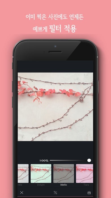 App Storeより引用# 일상속에, 또는 뜻 깊은 여행중에 마주하는 좋은 추억들을 더 이쁘고 화사하게 남기자는 의미에서 지은 일상 카메라 입니다.