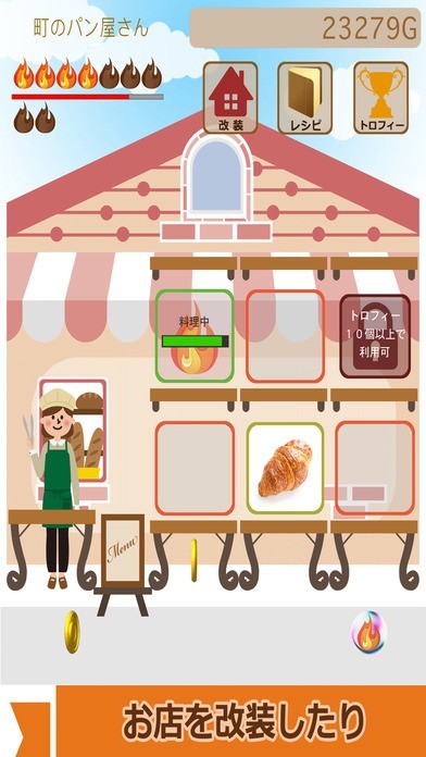 お客さんにパンを売ってゴールドを貯めると、お店の改装が出来るよ