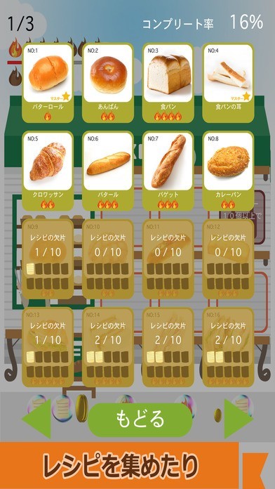 レシピの欠片が集まると新商品のパンを作成できるようになります。
