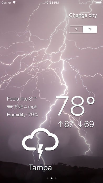 天候と気温をシンプルに表示してくれる便利な天気予報アプリです。左にスワイプするだけで天気予測画面へと移動するなど、使いやすいインターフェイスを備えているのが特徴です。