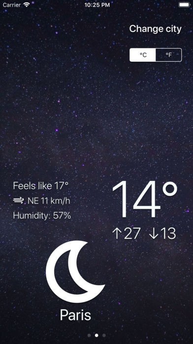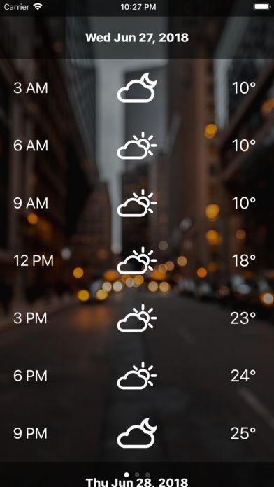 「InstaWeather」は、天候と気温を表示するシンプルな天気予報アプリです。 使いやすいインターフェイスを備え、左にスワイプするだけで天気予測画面へと切り替えが行えるのも特徴です。 1日の天気予測機能を搭載しており、時間による天気の移り変わりをチェックできるのが便利なポイント。 Todayウィジェットを利用すれば、ロック画面で直接天気を確認することができます。