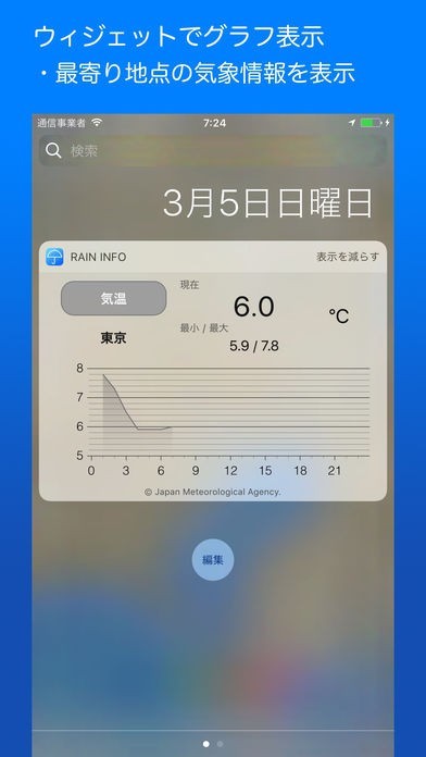はじめての場所や、旅行先でもこれさえあれば、いつでもどこでも簡単に天気や気温がチェックできます!洗濯だって、何時までに取り込めばいいか一目瞭然!急な天気の変化にも敏感に対応できます