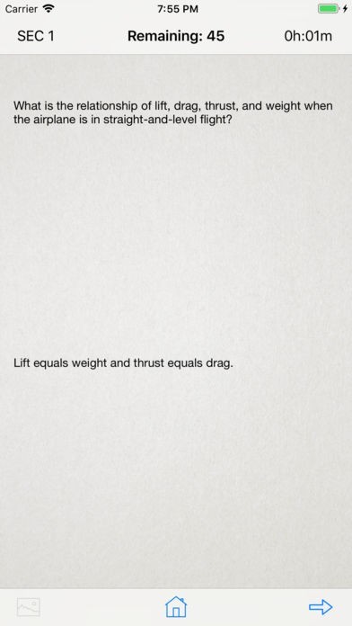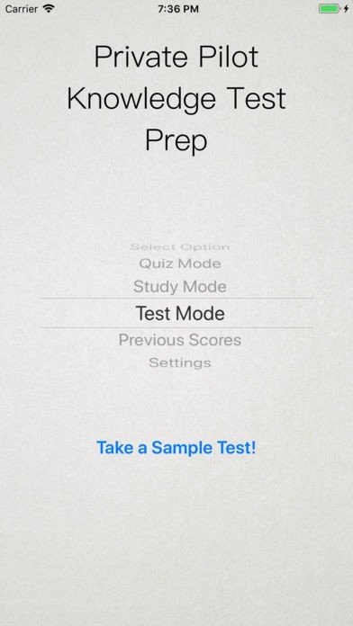 Test Mode - Simulates the test you are going to take at a FAA Knowledge Test Center. In this mode, you are asked 60 questions that are pulled from the entire question bank.