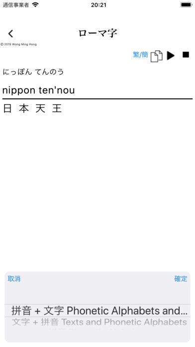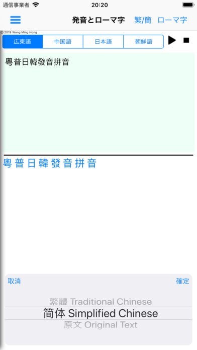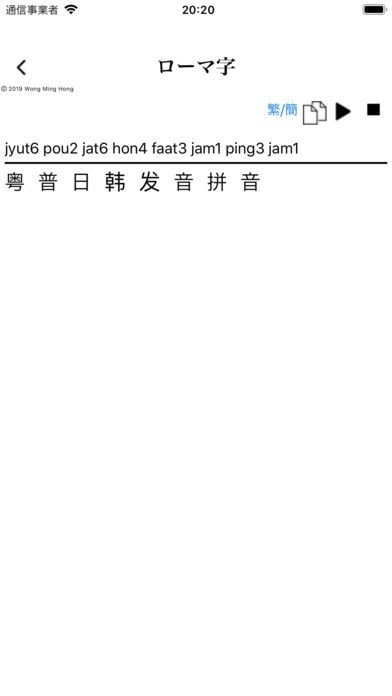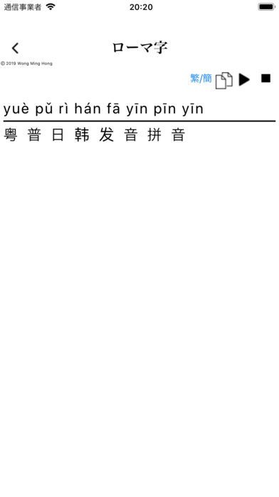 粵中日韓の発音とローマ字とピン音のスクリーンショット