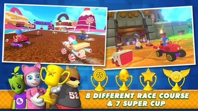 Super Kart Racing is an exciting and amazing racing game for all ages. Beach Racing, Buggy Forest, Funny Land, Mystic Egypt, Candy Asphalt Walley... And do more exciting battles on the racing courses. Be king of the Asphalt.