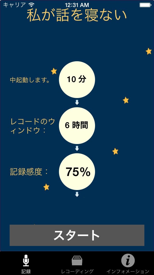 なんだか眠りの質が悪い、いびきがうるさいか気になる、そんな場合はこのアプリで夜間の自分がどんな音を出しているのか録音してみましょう。寝言やいびきなどをしっかり録音してくれます。