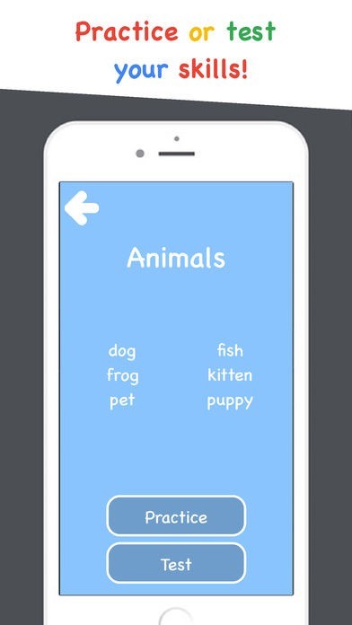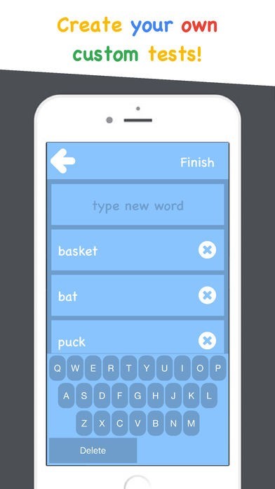 App Storeより引用Create your own test for practice or use any of our 120+ tests to practice certain categories. Each word is spoken aloud using Siri, so even your custom tests can be spoken! With 4 colors and a light black background to choose from learning how to spell has never been so colorful!