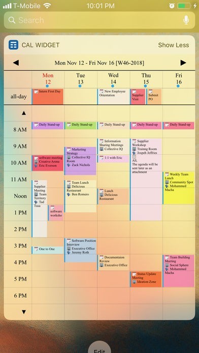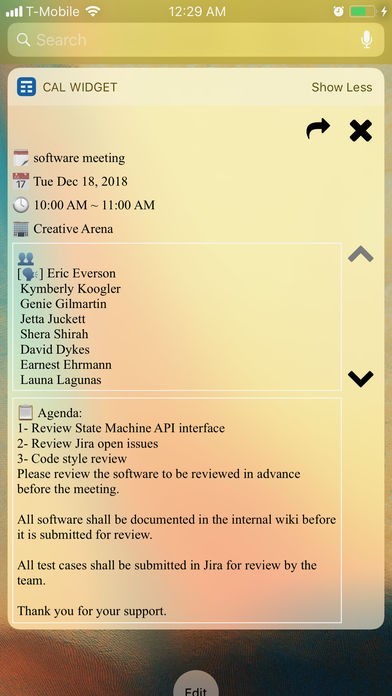 Get full calendar event details such as Location, attendees, notes and more from the widget. Skip unlocking your device and navigating to your calendar to see your future or past meetings.