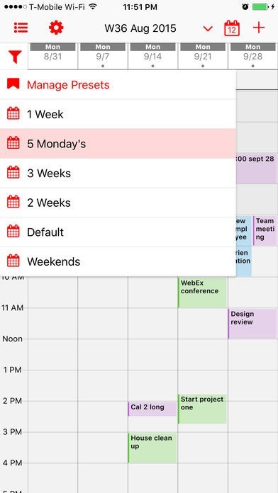 App Storeより引用A different approach to working with calendars. Fully customizable week calendar to link all your calendars to. Week Calendar Pro allows you to fully customize what you what to see on your calendar through a nice drop down preset that you can quickly switch between.