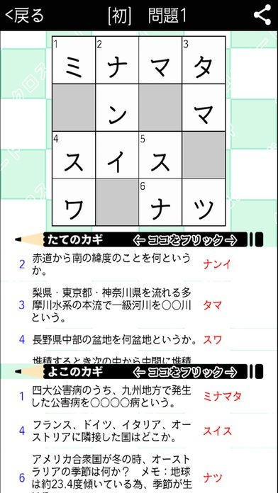 [中学生]総合地理クロスワード 有料勉強アプリ パズルゲームのスクリーンショット
